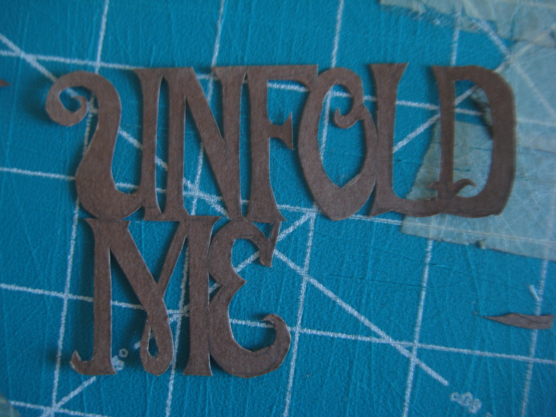 The first card I made was paper-cut text glued onto a solid piece of construction paper. For this second card, I decided to get fancy and do a couple of paper-cuts layered together. First, I cut out the main text.